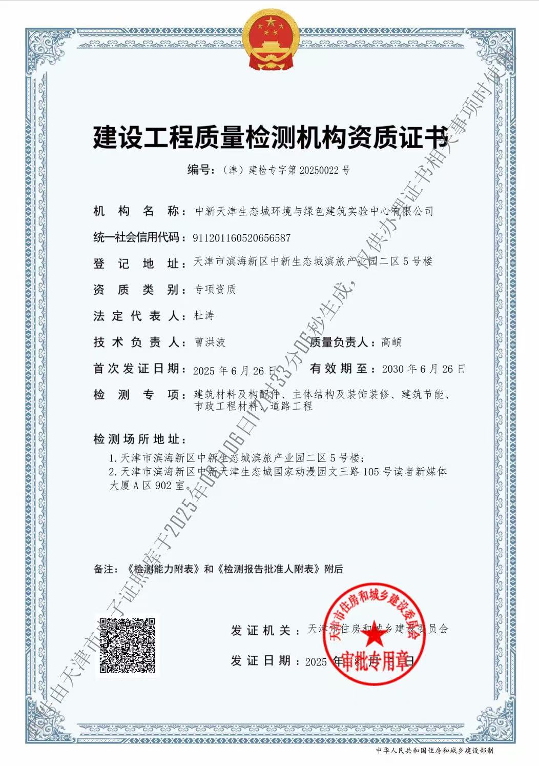 公司發(fā)展至今,技術能力不斷拓展和提升?,F已具備檢驗檢測機構資質(簡稱CMA)、天津市建設工程質量檢測機構資質、中國合格評定國家認可委員會實驗室認可資質(簡稱CNAS)等資質。同時,公司已被認定為高新技術企業(yè)、天津市專精特新中小企業(yè)、濱海新區(qū)首家近零能耗建筑第三方測評機構。公司主要從事建筑材料及構配件、主體結構及裝飾裝修、建筑節(jié)能、道路工程等檢驗檢測服務,以及綠色建筑節(jié)能評估、近零能耗、房屋質量安全鑒定等咨詢服務業(yè)務。公司在冊員工為60人,其中高級職稱30名,中級職稱20名,初級職稱10名。